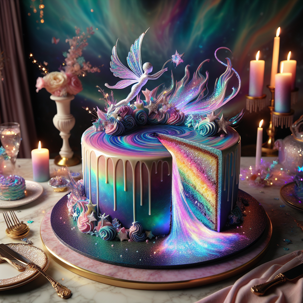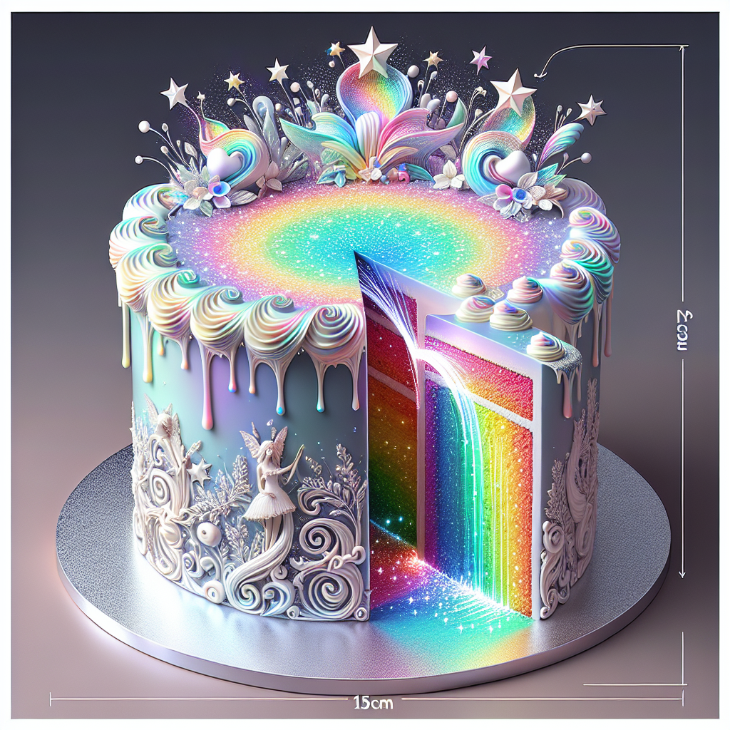 このケーキには、「魔法の小麦粉」、「エルフのミルク」、「ドラゴンフルーツのエキス」、「ユニコーンの涙」といった特別な素材が使われています。これらの素材が生み出す独特の風味と美しさを、ぜひお試しください。